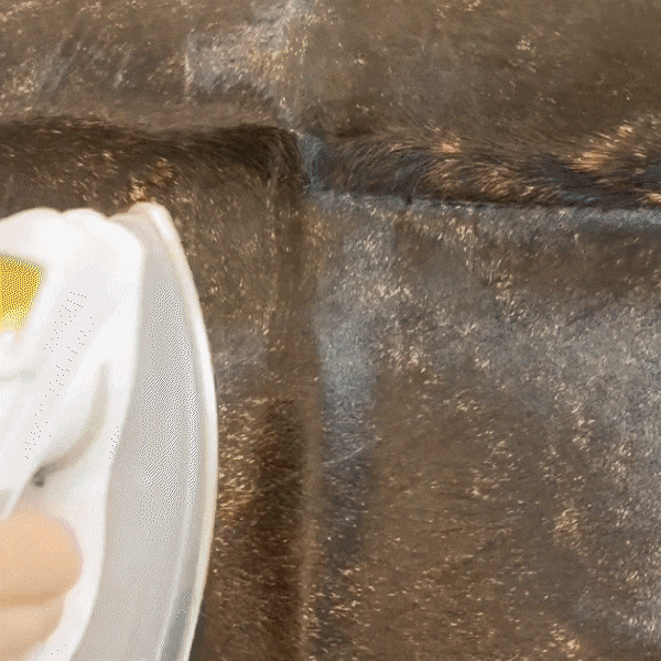 Continue to work the iron over the creased area until the crease is smoothed out to your satisfaction. Once the crease is fully smoothed out, remove the damp towel and allow the hide to cool and dry completely before handling or storing it.