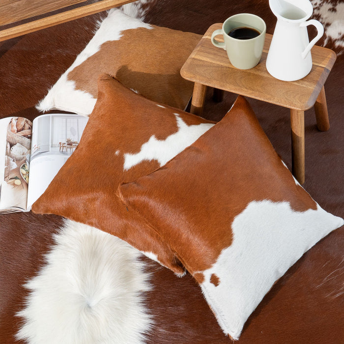 Transform your living space with our Brown and White Cowhide Pillow, meticulously crafted from premium cowhide to deliver unmatched quality and sheen. Each pillow is a true work of art, made in our tanneries where our skilled artisans handpick the finest Brown and White hides, ensuring that every pillow features the perfect blend of brown and white natural tones, making them the ideal accent for your couch, bed, or favorite chair.