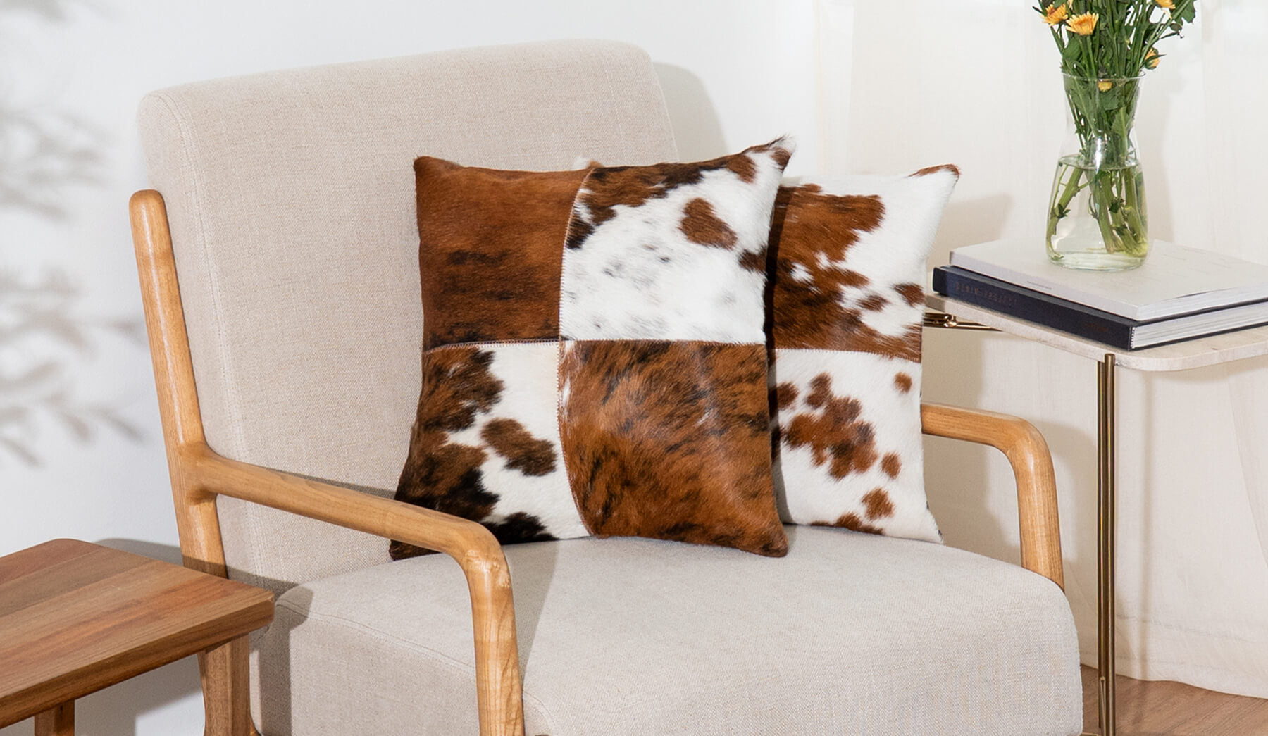 Tricolor Cowhide Patchwork Pillow - Four Panel Design